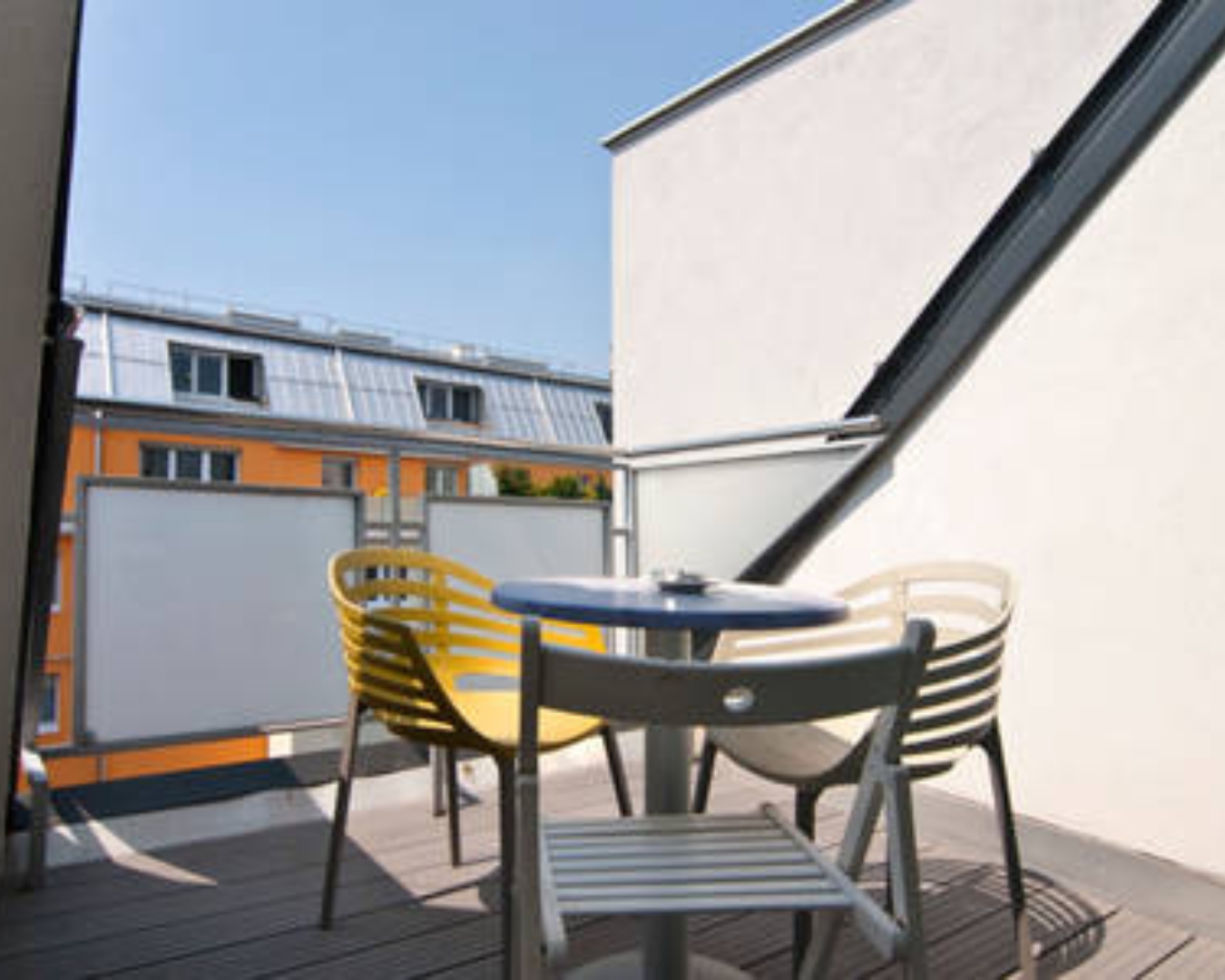 Der helle Wohnbereich bietet viel Platz für Wohnen und Entspannen, während große Fensterflächen für ein freundliches und lichtdurchflutetes Ambiente sorgen. Die Terrasse bzw. Dachterrasse, hochwertig isoliert und verfliest, erweitert den Wohnraum nach außen und bietet zusätzlichen Freiraum im Alltag. Dank der ruhigen Lage und der erhöhten Position im Dachgeschoss genießt man hier ein angenehmes Maß an Privatsphäre.