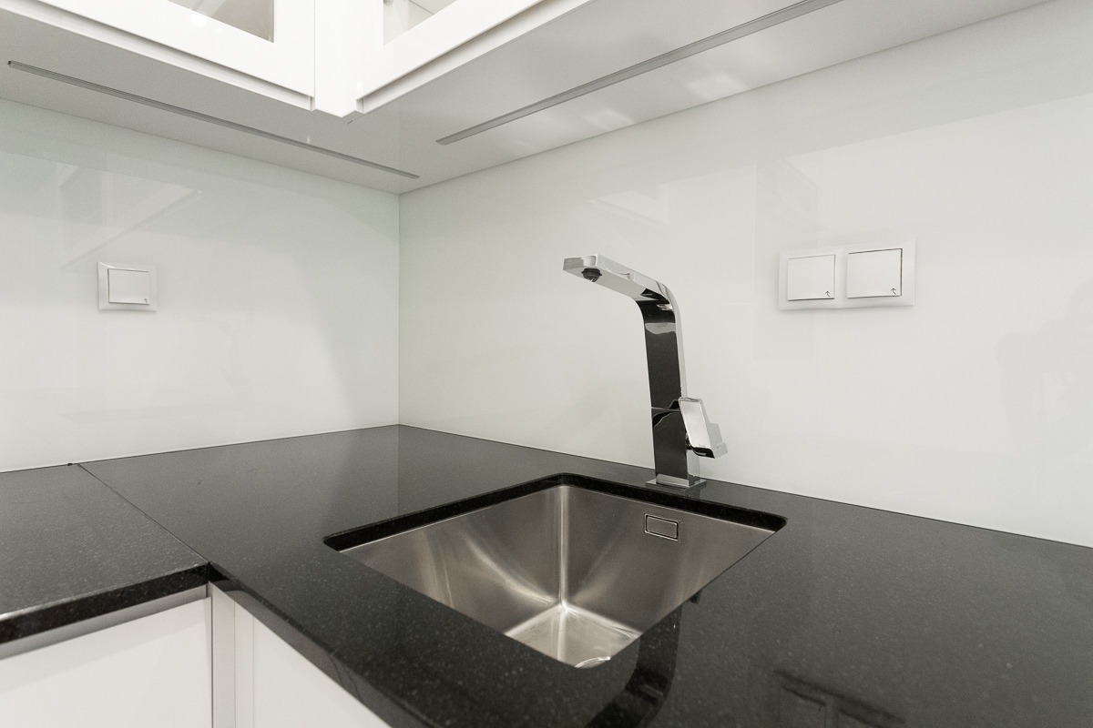 Zur hochwertigen Ausstattung zählen Eichenparkett , Fußbodenheizung , Klimaanlage , 3-fach verglaste Aluminiumfenster mit elektrischer Außenbeschattung , eine Einbauküche mit Siemens- und Bosch-Geräten sowie Lift bis . Ein Abstellraum außerhalb der Wohnung ist ebenfalls vorhanden.