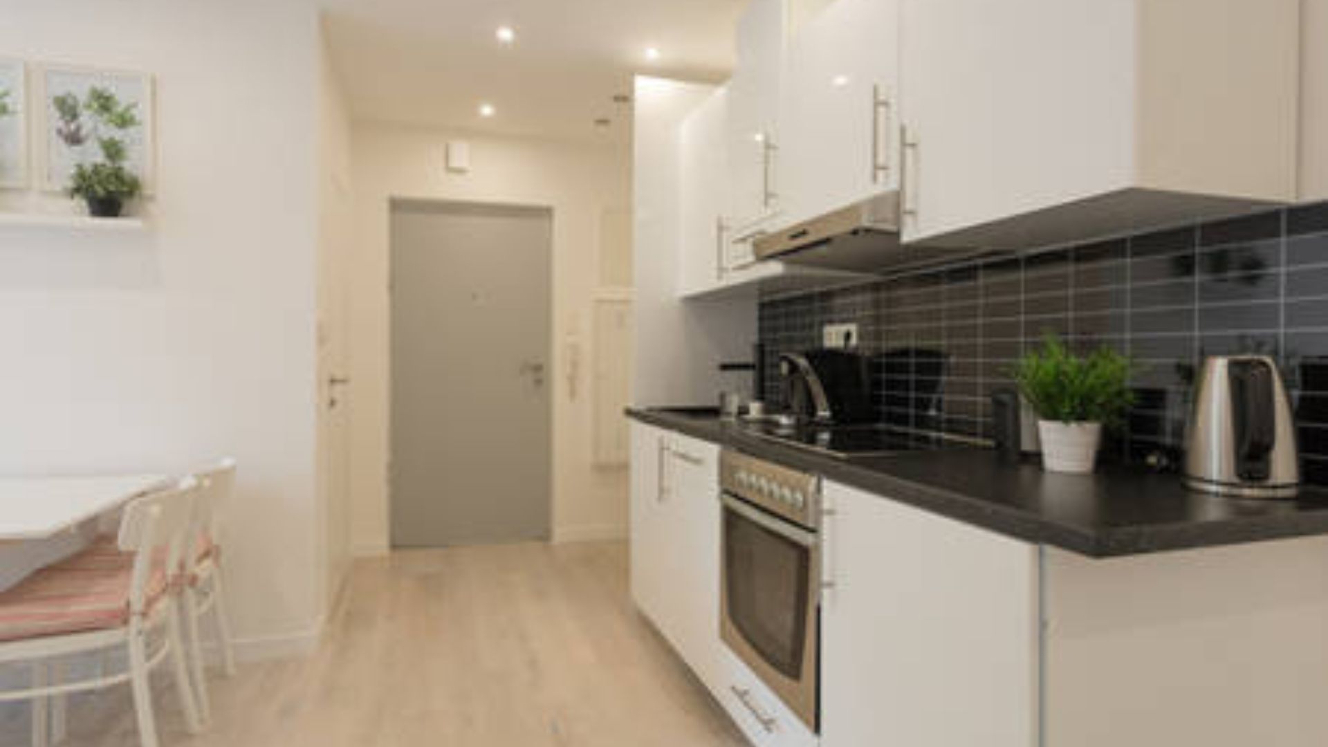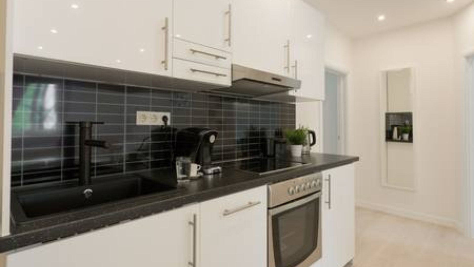 Die hochwertige Küche ist vollständig ausgestattet und fügt sich harmonisch in den Wohnraum ein. Helle Böden, moderne Beleuchtung und eine klare Linienführung verleihen der Wohnung ein zeitloses, gepflegtes Erscheinungsbild.