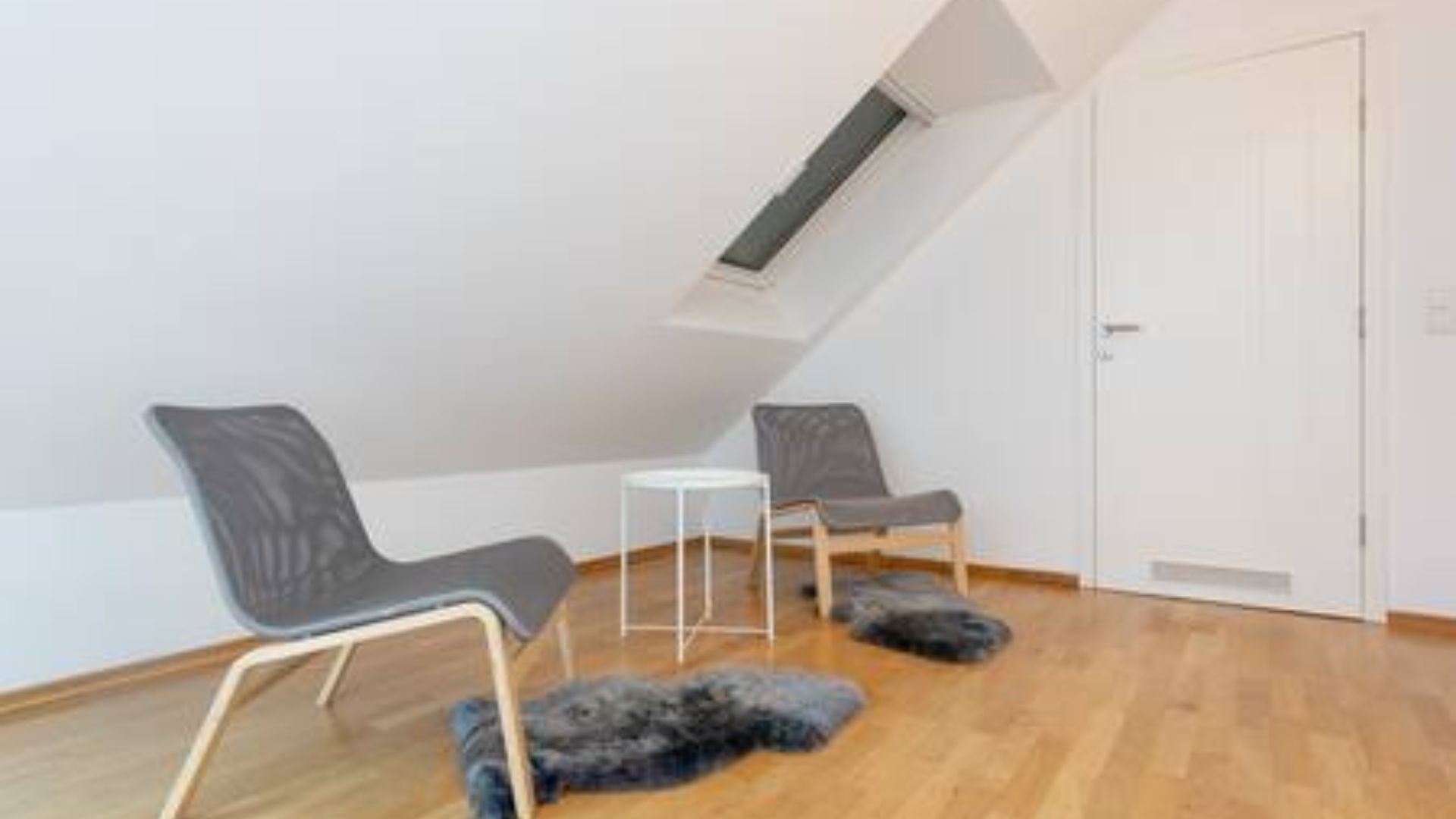 Der helle Wohnbereich bietet viel Platz für Wohnen und Entspannen, während große Fensterflächen für ein freundliches und lichtdurchflutetes Ambiente sorgen. Die Terrasse bzw. Dachterrasse, hochwertig isoliert und verfliest, erweitert den Wohnraum nach außen und bietet zusätzlichen Freiraum im Alltag. Dank der ruhigen Lage und der erhöhten Position im Dachgeschoss genießt man hier ein angenehmes Maß an Privatsphäre.